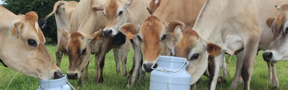 La ferme des Roches élève 45 vaches de Jersey. Ghislain et Marion considère qu’elle est la vache qui transforme le mieux la fibre en matière utile, c’est-à-dire qui transforme le mieux son alimentation (pâturage, foin) en lait. De plus, dans un troupeau, c’est une vache très douce, très rustique et facile à vivre.